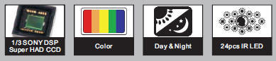 • Excellent Low Light Sensitivity of 0.3Lux/F1.2, 0Lux (LED